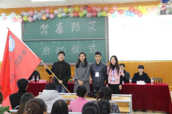 启动仪式分为四个阶段进行。第一阶段,杨建红代表学院致欢迎词,向与会人员的到来表示热烈的欢迎,向一直支持学院学生工作的部门和社会人士表示衷心的感谢;指出了毒品、艾滋病的巨大危害性,并针对“禁毒防艾”宣传教育工作提出三点要求:一是要引起高度重视,增强禁毒防艾知识;二是要加强宣传教育,普及禁毒防艾知识;三是要规范日常行为,增强自我保护意识;最后,号召大家积极参与到“禁毒防艾”宣传工作中,主动远离毒品、艾滋病。第二阶段,活动负责老师王磊从项目背景、项目内容和逾期目标三个方面对“贵州省贵安新区大学城禁毒防艾黔行之路”项目做了详细介绍,希望通过该项目的实施,能够让大学城更多的师生认识到毒品和艾滋病的危害性,珍爱自己的健康和生命。第三阶段,饶蕾为“禁毒防艾”志愿者服务队授旗,并在讲话中指出,当前禁毒防艾形势非常严峻,禁毒防艾工作迫在眉睫,青年学生是社会的中流砥柱,更是禁毒防艾的主要倡导者、宣传者和实践者,希望在场的同学们树立正确的人生观、价值观,增强自我保护能力,携起手来,共同唱响“珍爱生命,远离毒品,拒绝艾滋”的主旋律。第四阶段,姚敏作了“2016年青年学生艾滋病防治知识”专题讲座,结合世界艾滋病日这一主题,从艾滋病的致病原理、发病症状、传播途径、防制措施等方面逐一进行讲解;重点结合自身工作经验,介绍了艾滋病对社会安定及经济发展造成的巨大危害,强调了全面开展大学校园艾滋病防范宣传工作的重要性,进一步剖析了艾滋病控制的严峻形势,解读了艾滋病常见误区,警示广大学子洁身自好。