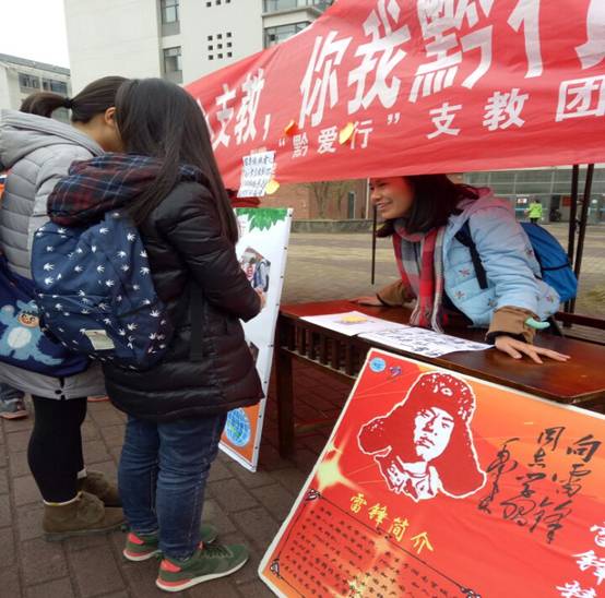 为了响应中共中央、国务院印发《关于加强和该进新形势下高校思想政治工作的意见》的号召,3月6日,在学院团委和老师的支持下,bat365登录平台入口“黔爱行”支教团联合学院青分会在花溪校区一食堂前开展了“学习雷锋”活动。