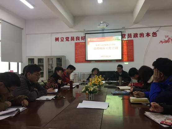 37日上午,bat365登录平台入口在学院二楼党员活动室召开了思想政治工作会议。学院党委书记杨建红、副书记田伟及全体专兼职辅导员参会。会议由杨建红主持。