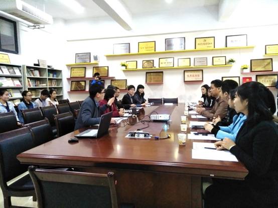 3月30日上午,贵州财经大学管科学院党委书记周新刚一行9人到bat365官网bat365登录平台入口进行党建工作交流,在bat365登录平台入口二楼党员活动室举行座谈会。bat365登录平台入口党委书记杨建红、副书记田伟及相关工作人员参加了交流会。