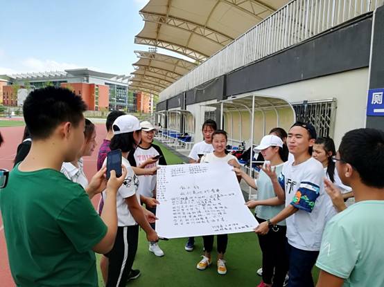活动中,孙思博带领所有学员在二号运动场依次开展了“速度与激情”、“贪吃蛇”、“摸石过河”、“以名为诗”四项活动。活动中,孙思博一再强调学员们要树立团体意识,加强彼此的交流和信任,以提高团队成员的信任感,增强团队协作能力。
