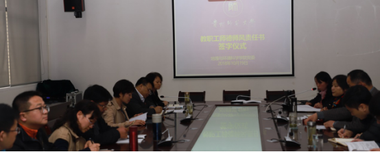 10月19日下午,bat365登录平台入口党委在花溪校区学院楼3309会议室举行《bat365登录平台入口教职工师德师风责任书》签订仪式。活动由学院党委副书记郭锐主持。全院教职工参加。