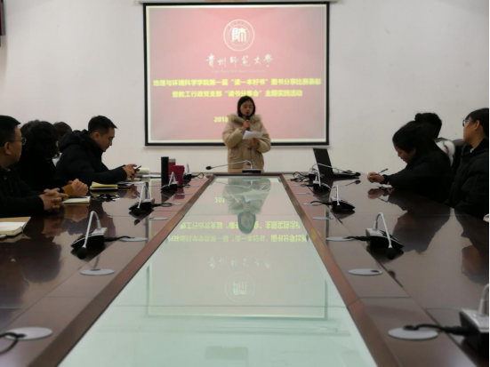 2018年12月12日中午,bat365登录平台入口在学院楼3309会议室举行学院第一届“读一本好书”图书分享比赛表彰大会。学院党委书记杨建红、院长周忠发、党委副书记郭锐出席。学院教工行政党支部全体党员受邀参加。活动由2016级地理科学班姜久梅主持。