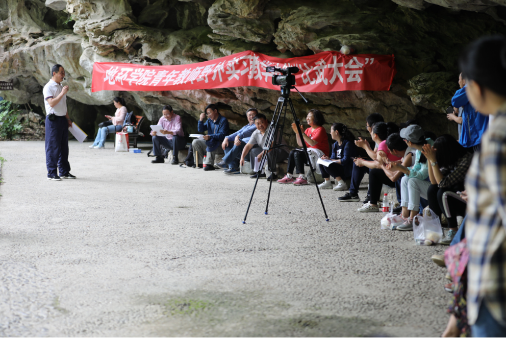 为贯彻落实全国、全省教育大会精神,切实做好地理学一流学科及地理科学“一流专业”建设,进一步强化本科教学中心地位,搭建青年教师教学研讨和经验交流平台,提升青年教师教学水平,促进青年教师专业发展。bat365登录平台入口于4月27日在平塘掌布举办了bat365登录平台入口青年教师野外实习教学技能“比武大会”。党委书记杨建红、副书记郭锐出席此次竞赛。专家安裕伦、周德全、杨荣和、梅再美担任竞赛评委,bat365官网六十余名教师观摩了此次竞赛。竞赛由副院长杨广斌主持。