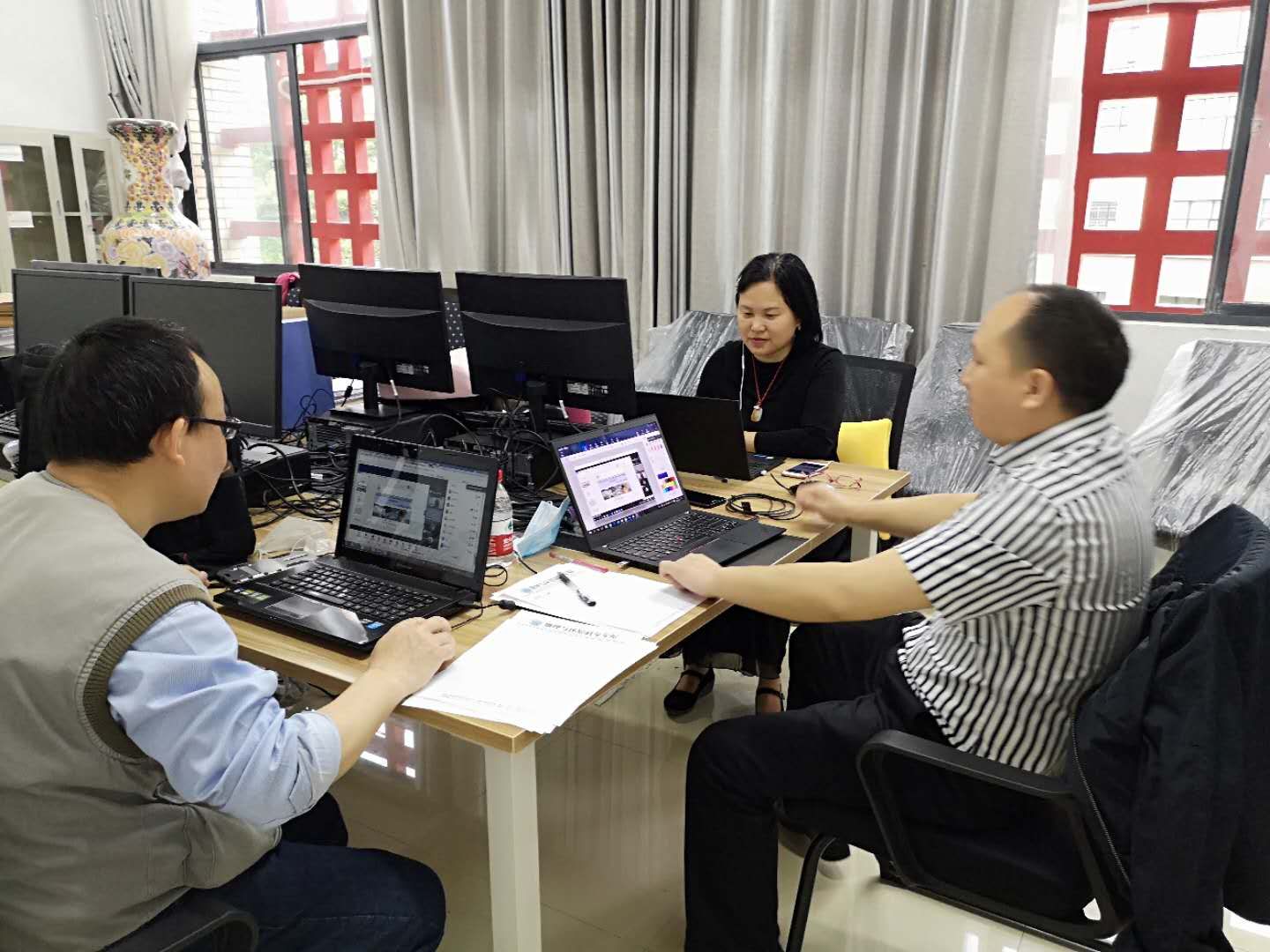 老师们提前进行网络设备调试