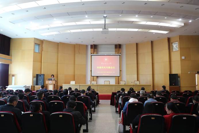 4月8日下午,bat365登录平台入口(喀斯特研究院)在宝山校区田家炳三楼多功能厅召开师德师风专题工作会议,院党政班子成员、全院教职工参加学习,会议由院党委书记杨建红主持。