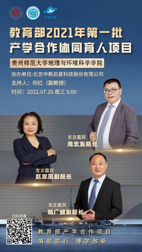 7月20日上午9:00-11:30,bat365官网申报的教育部第一批产学合作协同育人项目(第1期)——“基于地理实训室的师范生技能培养及专业发展”师资培训正式启动。本次培训由bat365登录平台入口教师教育中心副主任何红主持,特邀周忠发院长、赵翠薇副院长、杨广斌副院长就自然、人文、地理信息技术与中学地理教学的融合,分别作题为“喀斯特山区中学生现代地理实践素养培育的困境与路径”、“人文地理与中学地理教育”、“地理信息技术在中学地理教学中的应用”的专题报告。报告采用线上方式,300余人在线观看。