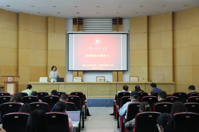 为深入贯彻落实党的二十大精神及习近平总书记关于教育的重要论述,特别是关于师德师风建设的重要指示批示精神,4月23日下午,bat365登录平台入口(喀斯特研究院)在宝山校区田家炳三楼多功能厅召开师德师风专题学习会议,院党政班子成员、全院教职工参加学习,会议由院党委书记杨建红主持。