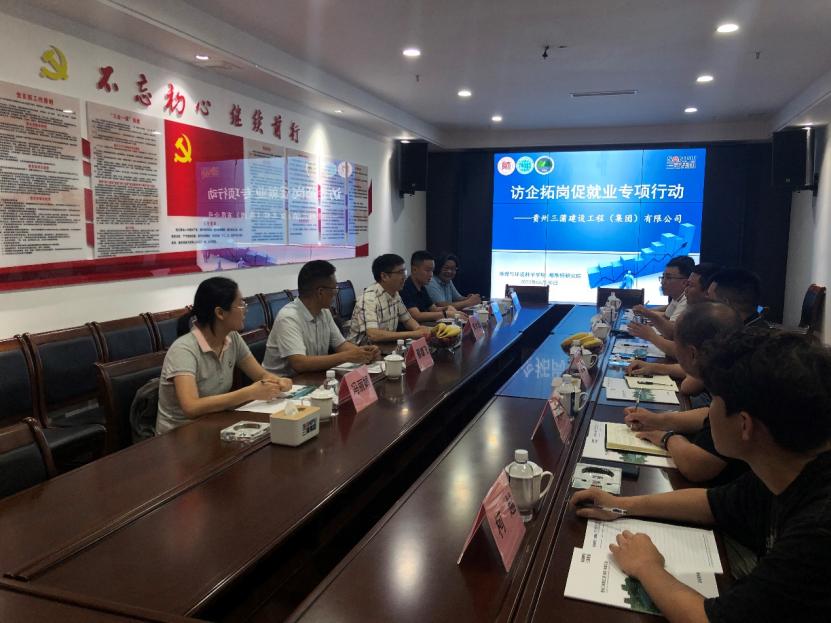 为深入贯彻落实党中央、国务院“稳就业”、“保就业”重大决策部署,进一步强化院企衔接、深化院企合作,扎实推进bat365官网2023届毕业生就业创业工作,5月22日、6月30日下午,bat365官网副院长朱大运带队分别前往贵州天兰环保有限公司、贵州三蒲建设工程(集团)有限公司、贵州智兴环保科技有限公司开展访企拓岗促就业专项行动,与公司负责人进行座谈交流,了解公司用人需求,推介bat365官网毕业学生。学院环境科学系主任张帅、副主任冯丽娟,实验室主任蔡雄飞,教师向刚、吴沂晓、付茂,以及两位研究生毕业生一同前往。