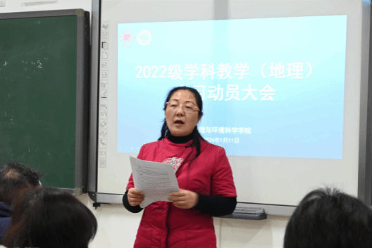2024年1月11日下午,bat365登录平台入口于3108教室召开2022级学科教学(地理)实习动员大会。教育硕士导师以及2022级学科教学(地理)专业全体同学参会。会议由研究生管理科谢小兰老师主持。