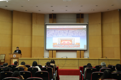 2022年10月21日,院党委书记杨建红以学习“党的二十大报告中的新观点、新论断、新思想”为主题展开,从“三个务必”“十年来三件大事”等十余个方面理清了学习党的二十大报告的基本脉络,细致地为大家阐述了学习党的二十大报告的重要意义,她要求,全体教师要学深悟透党的二十大报告的精神实质、丰富内涵和实践要求,把思想和行动统一到党的二十大精神上来,强化思想理论武装,切实践行立德树人使命,坚定信心、同心同德,埋头苦干、奋勇前行,胸怀“国之大者”,为党育人,为国育才,努力办好人民满意的高等教育,为校院高质量发展贡献新的力量。