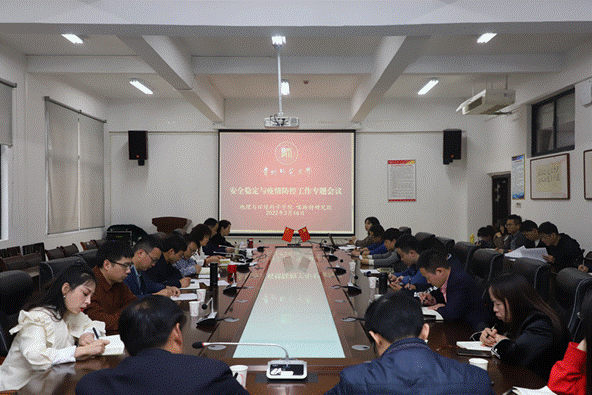 2022年3月16日上午,bat365登录平台入口(喀斯特研究院)在花溪校区地环楼3309会议室召开院党委安全稳定和疫情防控专题扩大会议,院党委班子成员、各系(部)主任、各科室负责人、专兼职辅导员参加会议,会议由院党委书记杨建红主持。