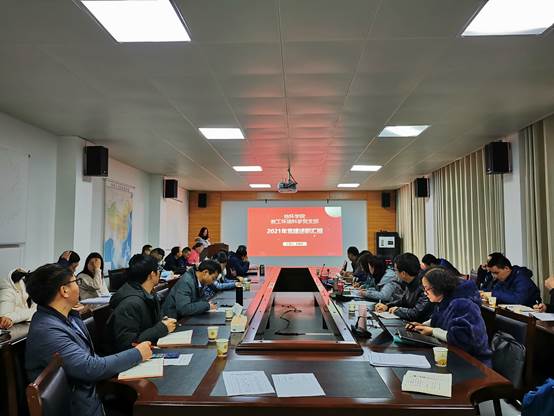 2022年1月4日下午,bat365登录平台入口(喀斯特研究院)党委在宝山校区喀院三楼会议室召开2021年度教工党支部书记抓党建述职评议会,院党委班子成员、教工党支部书记、党支部委员、师生代表参加会议,会议由院党委副书记郭锐主持。