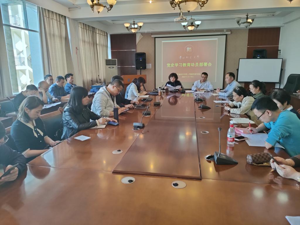 会上,杨建红传达学习了习近平总书记在党史学习教育动员大会上的重要讲话精神和视察贵州重要讲话精神;中央、省委和学校党史学习教育动员大会会议精神,并对bat365官网开展党史学习教育进行全面动员部署。杨建红强调,2021年是我们建党100周年,是学校建校80周年和“十四五”发展规划开局之年,全院教职工生要深刻认识和领会党史学习教育的重大意义,要突出工作重点,牢牢把握党史学习教育的目标要求任务。要坚持学史明理,树牢唯物史观,学懂用通党的理论知识;要坚持学史增信,增强历史自觉,筑牢信仰之基;要坚持学史崇德,弘扬优良传统,传承红色基因,永葆党的初心和使命;要坚持学史力行,加强党性锤炼,砥砺政治品格,践行知行合一,勇于担当、善于作为。她要求,全院教职工生要线上线下齐发力,抓牢抓实专题学习;要分层分类作指导,抓实宣传宣讲;要深入基层谋发展,抓实专题调研;要回应关切惠民生,办好实事解难题;要严守规矩知敬畏,抓实警示教育。