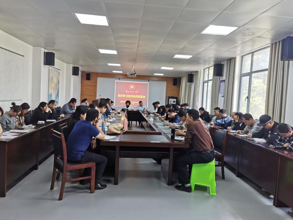 为深入贯彻落实党中央、省委和学校党委党史学习教育和“牢记殷切嘱托、忠诚干净担当、喜迎建党百年”专题教育的重要安排部署,教育引导全院党员干部牢固树立“四个意识”,坚定“四个自信”,做到“两个维护”,教育引导全院师生听党话、颂党恩、跟党走,3月19日下午,bat365登录平台入口(喀斯特研究院)党委在宝山校区地环楼召开党史学习教育动员部署会,院党委书记杨建红,党委副书记、院长周忠发,院领导班子成员,各科室负责人、全体教职工150余人参加会议,院党委书记杨建红主持会议并讲话。