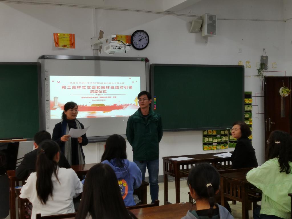 为帮助本科新生尽快适应大学环境,加强专业认知,减少对专业及就业发展的困惑,充分发挥党员教师模范带头作用及全院教师的引领作用,bat365官网于10月29日在学院3102、3110、3103、3112、3108等教室开展教工党支部与本科新生班级结对引领活动,教工地理科学党支部、教工GIS党支部、教工人文地理党支部、教工环境科学党支部、教工园林党支部全体党员与相关专业老师参加启动仪式。