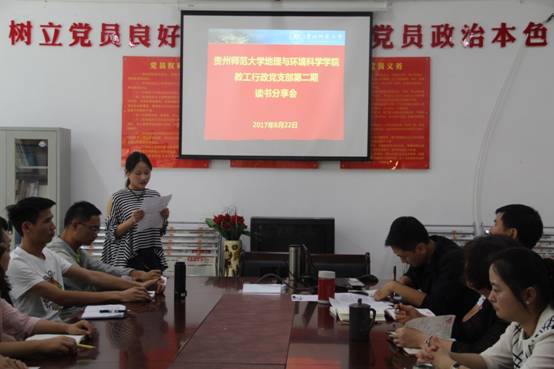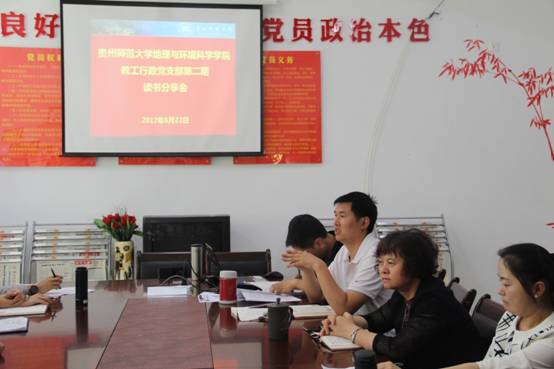 2017年6月22日,bat365登录平台入口教工行政党支部在bat365官网花溪校区地环楼二楼党员活动室开展了主题党日暨“第二期”读书分享会读书分享会。参加本次活动的有,院党委书记杨建红、副书记田伟、教工行政党支部全体成员及2014级地信专业的学生代表,共计20余人。会议由教工行政党支部书记胡丰靑主持。
