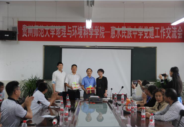 按照培训日程安排,5月13日下午,以“服务”地方教育建设为主题的第二阶段培训会在贵州省惠水县民族中学举行。学院党委委员、教工党支部书记彭贤伟教授受邀为当地学生作题为“高考地理全国新课标Ⅱ卷命题特点与复习建议”的讲座,针对当地学校高三学生即将面临的高考,带去了前沿、科学的地理学习思维和解题思路,受到该校广大师生的欢迎。学院党委书记杨建红、副书记田伟代表党委向惠水民族中学捐赠了学院党委精心挑选准备的党建书籍。各教工党支部书记、委员结合院党委提前制定的工作提纲,对当地地理教师队伍建设现状、高考制度改革对中学地理的影响、高考制度改革对高校人才培养在地理方面的需求等工作开展了针对性调研;针对惠水民族中学老师们关注的高考改革背景下学生的选择与教师的挑战、高考改革背景下学生的生涯教育等问题进行了深入探讨。整个交流活动,受到了惠水民族中学领导及教师们的大力支持。