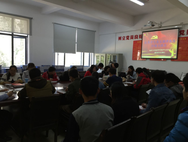 为进一步加强学生党支部建设,扎实推进本学期学生党建工作,bat365登录平台入口学生党总支于3月25日在bat365登录平台入口党员活动室召开“学生党支部评优交流会暨学生党建工作推进会”。学生党总支委员、各学生党支部书记、党建中心委员等共计30余人参加。会议由学院党委组织员郭锐主持。