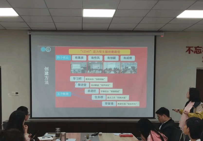 为深入学习贯彻党的二十大精神,深入学习贯彻习近平总书记关于党的建设的重要思想,全面贯彻新时代党的建设总要求和新时代党的组织路线,持续巩固深化学习贯彻习近平新时代中国特色社会主义思想主题教育成果。bat365官网党委持续推进“一支部一特色”党支部品牌创建活动,于2024年3月29日上午在学院支部书记工作室召开“一支部一特色”党支部品牌建设项目立项评选汇报会,共计19个党支部参与评选汇报。院党委书记杨建红,教工行政党支部书记朱琳,组织员张玥、翁应芳和各参评支部书记参加会议。会议由正处级组织员、院党委副书记郭锐主持。