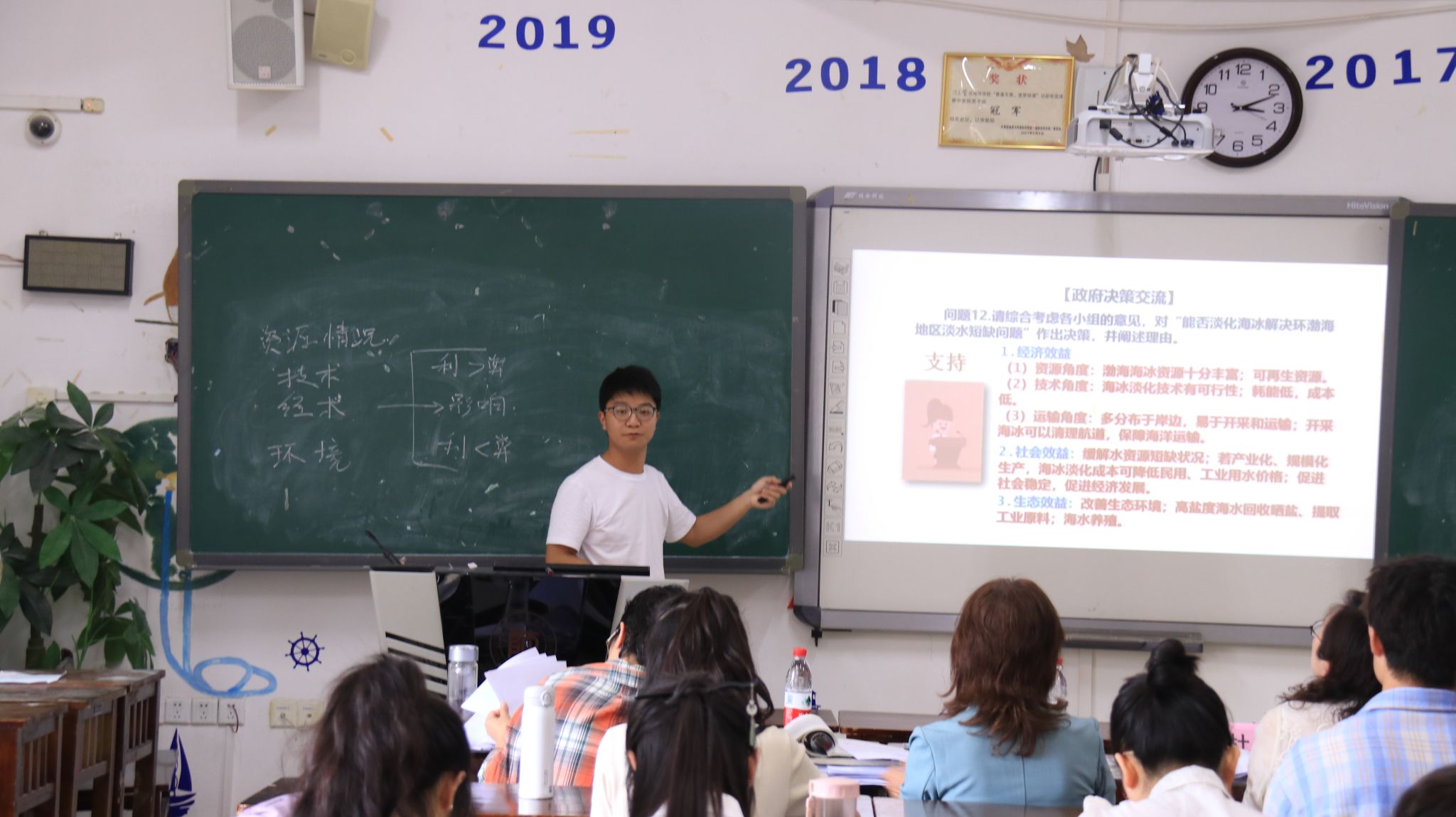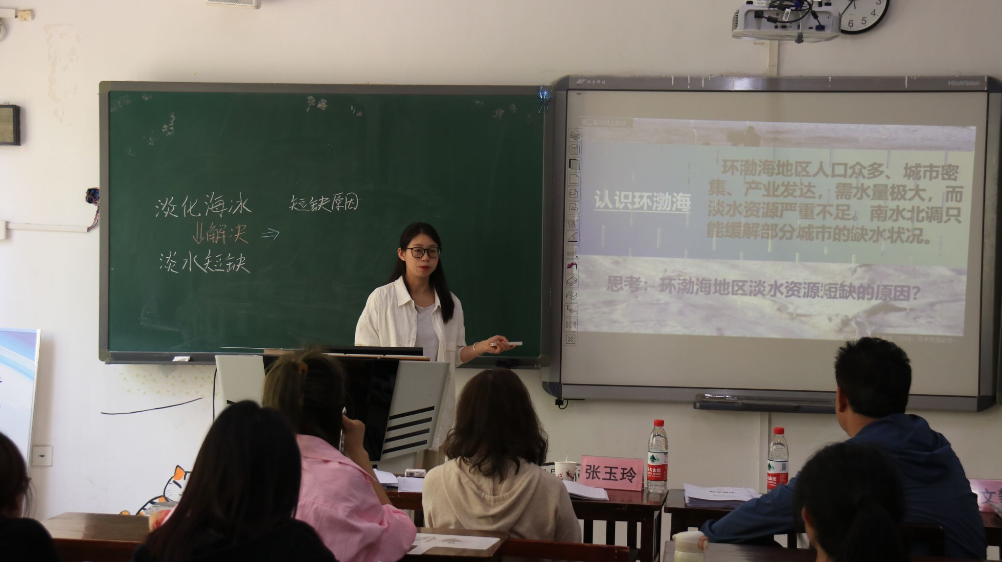 本次竞赛共分8个组,同时在各分赛场进行竞赛。参赛选手围绕“中国民族的分布特点、香港、季风气候显著、大气的垂直分布、农业区位因素、问题研究:能否淡化海水解决环渤海地区淡水资源短缺问题”6个等中学地理课题展开10分钟以内的片段教学。