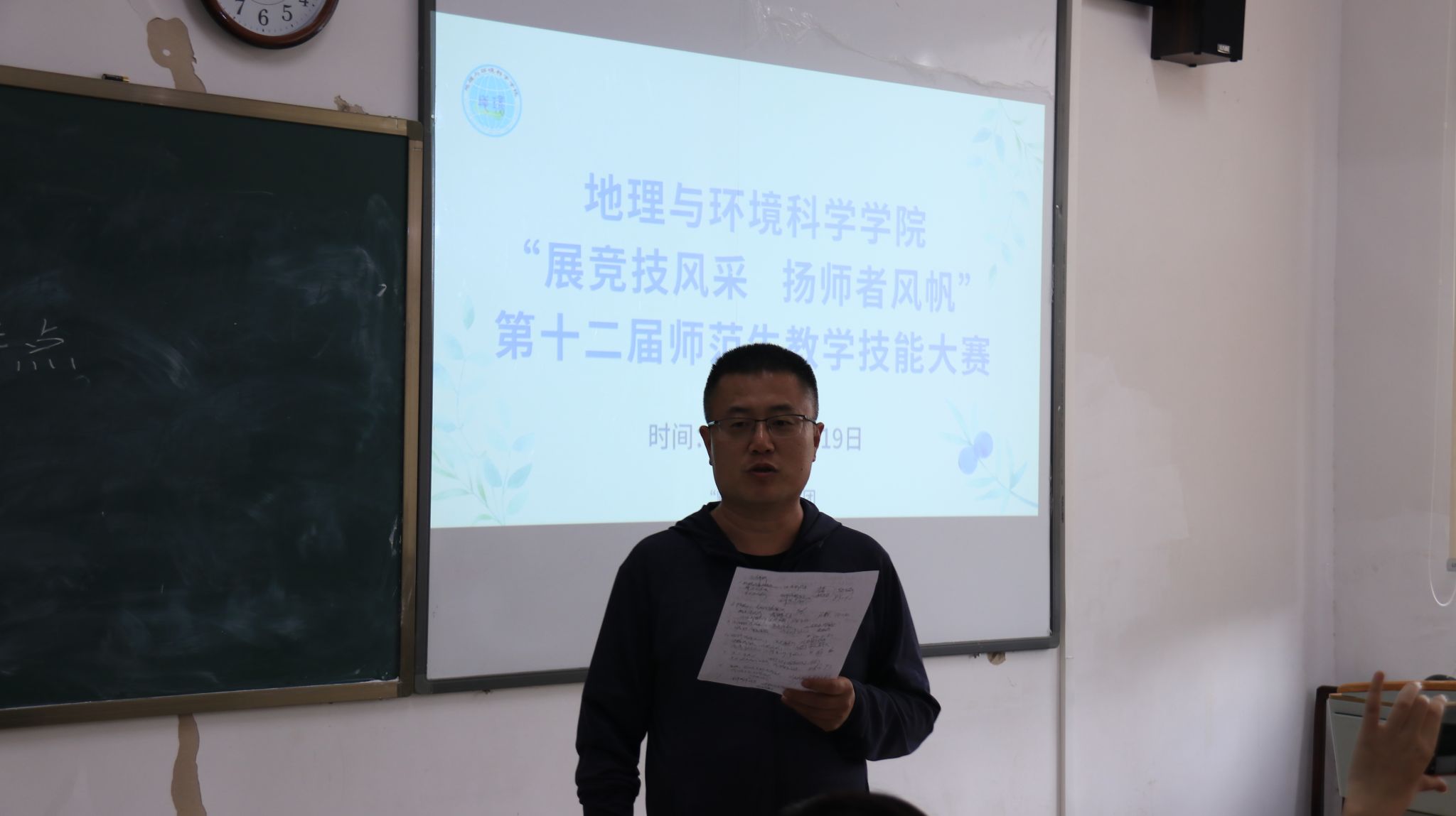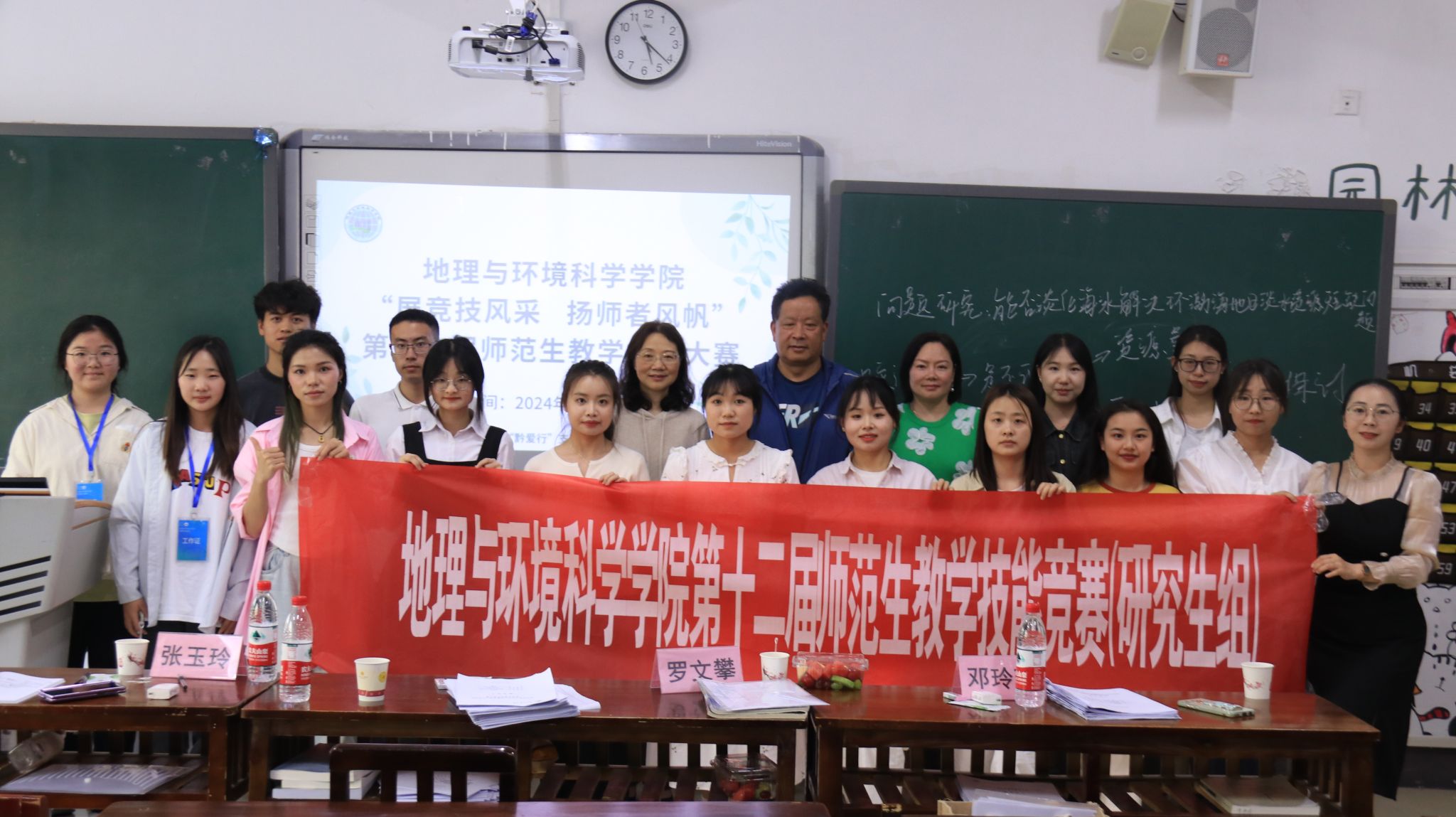 2024年4月19日下午,bat365登录平台入口举办了“展竞技风采,扬师者风帆”第十二届师范生教学技能竞赛。此次竞赛诚挚邀请了原贵州省教育科学院地理教研员张慧、原贵阳市第三实验中学高级教师黄桂英、原贵阳市第二十八中学校长杨华嵩、贵阳市第三十九中学党总支书记蒋晓宏、贵安新区新艺学校党支部书记刘伟、贵阳市民族中学正高级教师青渝、贵阳市第二中学地理正高级教师罗文攀、贵阳市教育科学研究所地理教研员张玉玲、北京师范大学贵安新区附属学校党总支书记安家堃、贵阳市第二十四中学校长赵亮、贵阳市花溪区溪南高中副校长杜鹃、bat365登录平台入口附属中学地理高级教师张艳、bat365登录平台入口附属中学德育处主任罗家杨、贵阳市第二十六中学地理教师邱兵贵、花溪区教育培训研究中心教研员龙黔、贵阳市教育科学研究所高中地理教研员薛佳佳共16位校外专家及bat365登录平台入口地理科学系教师焦树林、容丽、李亦秋、何红、向刚、朱珂,人文地理与城乡规划系教师邓玲玲、李娟共8位校内教师担任评委。院党委书记杨建红、副院长赵翠薇亲临现场观摩指导。