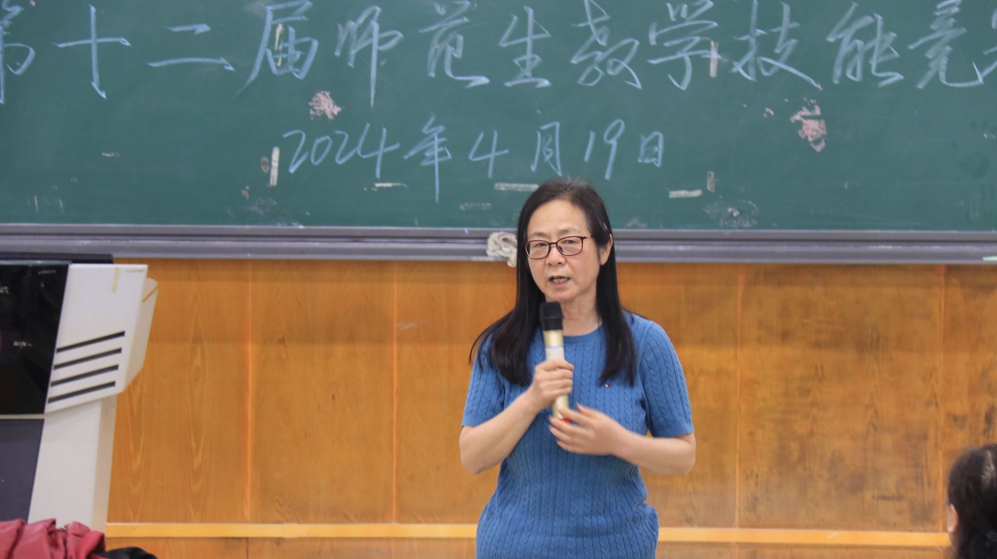 13:30,开幕式在文3501举行。杨建红首先对专家评委表示感谢与欢迎,她指出近年来学院持续加强师范生教学技能的培养,希望本届竞赛能够继续发扬“以赛促赛、以赛促学、以赛促教”的理念,通过竞赛,同学们不断完善教学理念、优化教学方法、改进教学技能、提升教学质量,坚定心有大我、至诚报国的理想信念,为成为新时代卓越教师而不断努力。