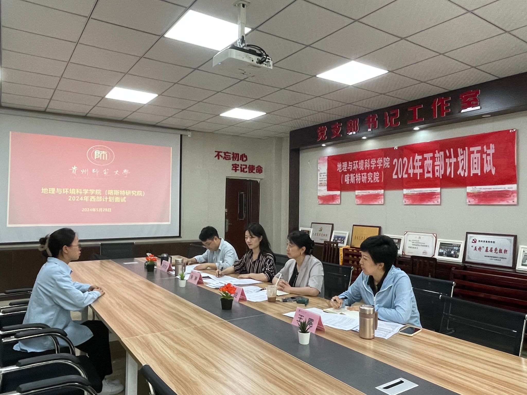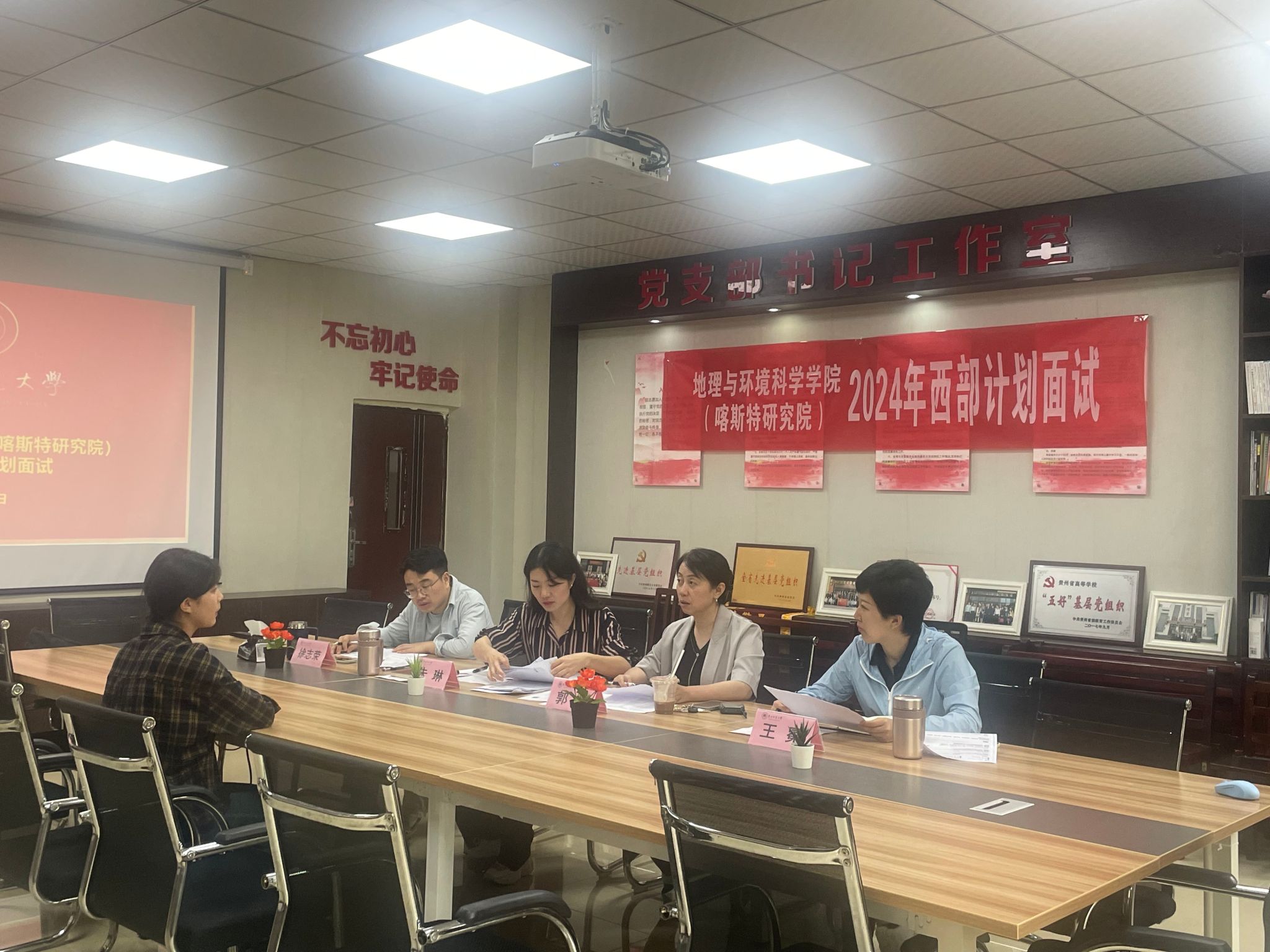 为了深入贯彻党的二十大精神,积极响应共青团中央“西部计划”号召,引导广大学子“到西部去,到基层去,到祖国和人民最需要的地方去”,5月28日下午,2024年西部计划志愿者面试招募工作在bat365官网支部书记工作室举行。院正处级组织员、党委副书记郭锐、院团委书记朱琳、辅导员王冕、徐志荣担任本次面试的评委。2024届应届毕业生共52名本科生、研究生参与面试。面试由朱琳主持。