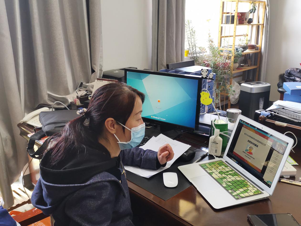 本次就业指导课分专业分班级进行。首先,郭锐亲切问候毕业班的同学,并就当前疫情期间学校的工作安排给大家做简要说明,强调了毕业班当前的两大任务是毕业论文和就业。其次,郭锐就今年就业面临压力和带来的机遇给同学们做详细解释。郭锐先是深入分析了今年的就业形势的严峻性,提醒同学们要提高就业紧迫感,积极投身求职应聘;接着就基层项目就业政策做了详细解读,鼓励同学们积极投身基层,让青春在脱贫攻坚主战场和基层一线上闪闪发光。最后,郭锐再次强调学校暂未确定返校时间,望同学们积极配合学校的疫情防疫工作。