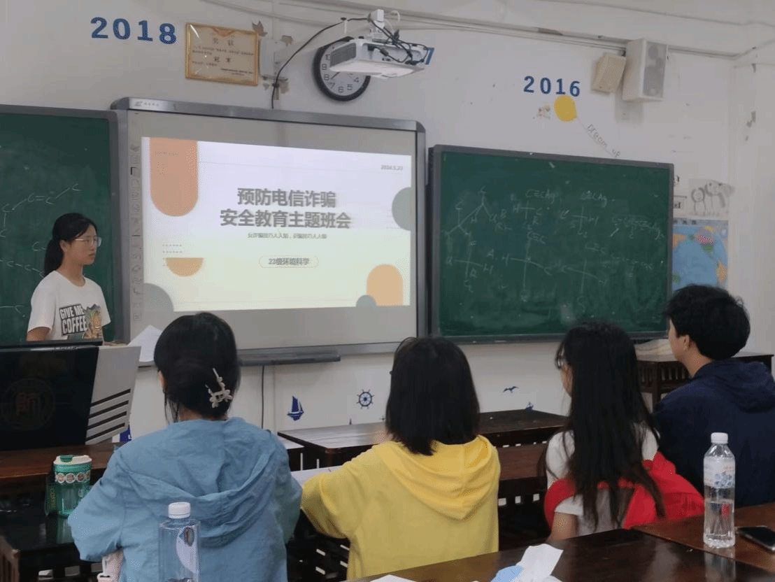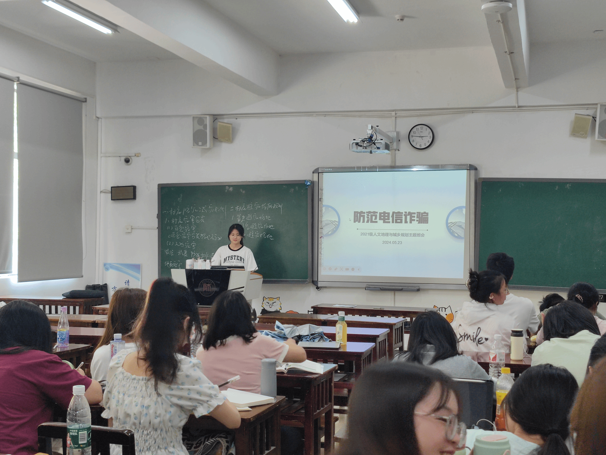 本次主题教育班会的开展,进一步帮助同学们认识常见的电信诈骗形式,增强防骗意识。今后,地理与环境科学学院将持续加大防诈骗宣传力度,筑牢防骗安全防线。